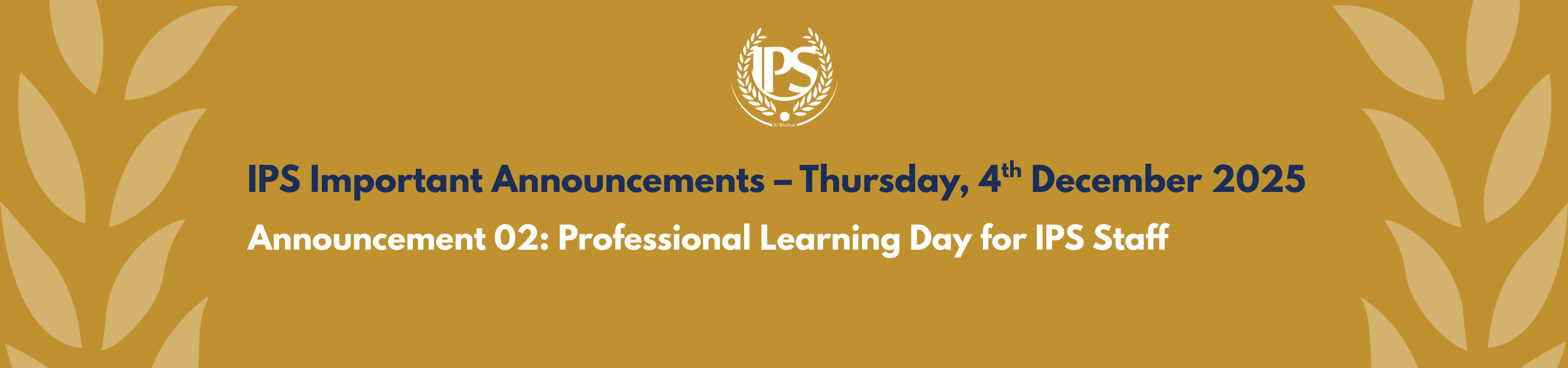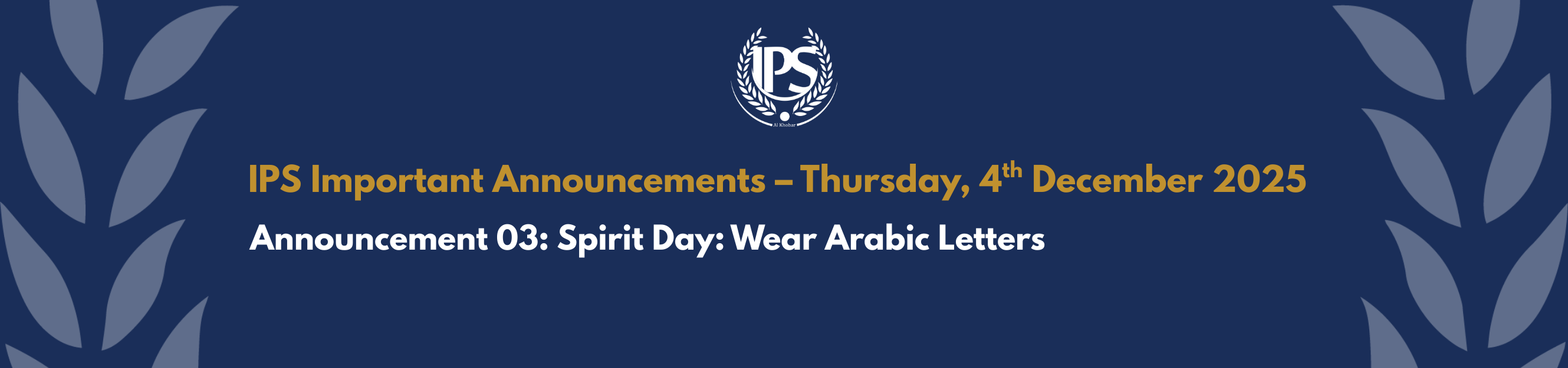 As part of our celebration of the Arabic language and cultural identity at IPS, we are pleased to announce a special Spirit Day event that will take place on Tuesday, December 9, 2025.