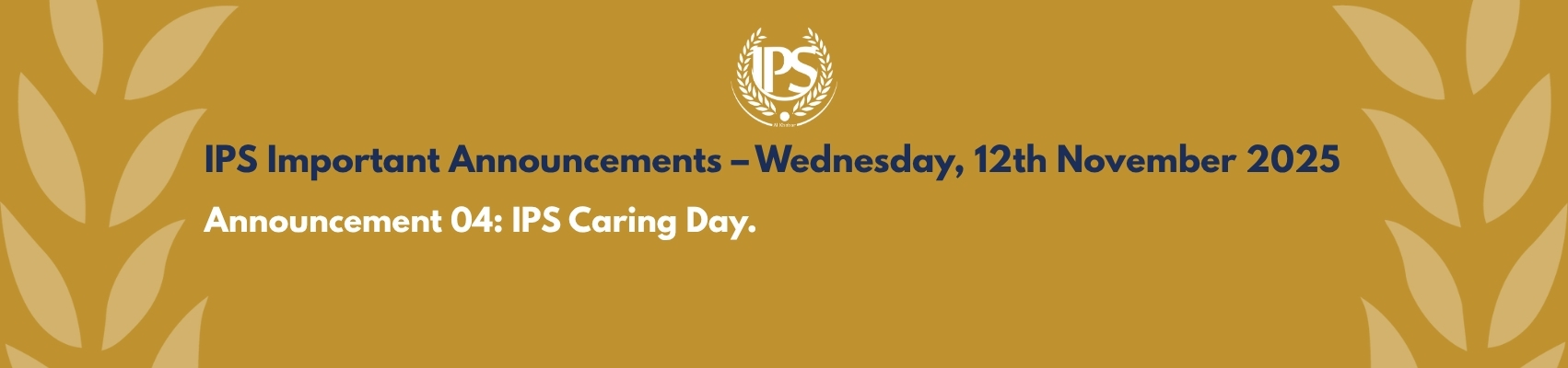 We are pleased to announce that Thursday, November 13 will be celebrated as IPS Caring Day across all sections of the school. The purpose of this special day is to reinforce our shared commitment to empathy, compassion, and kindness as core values of the IPS community. Through meaningful activities, students will be encouraged to demonstrate care and respect toward others, contributing to a positive and supportive school environment.