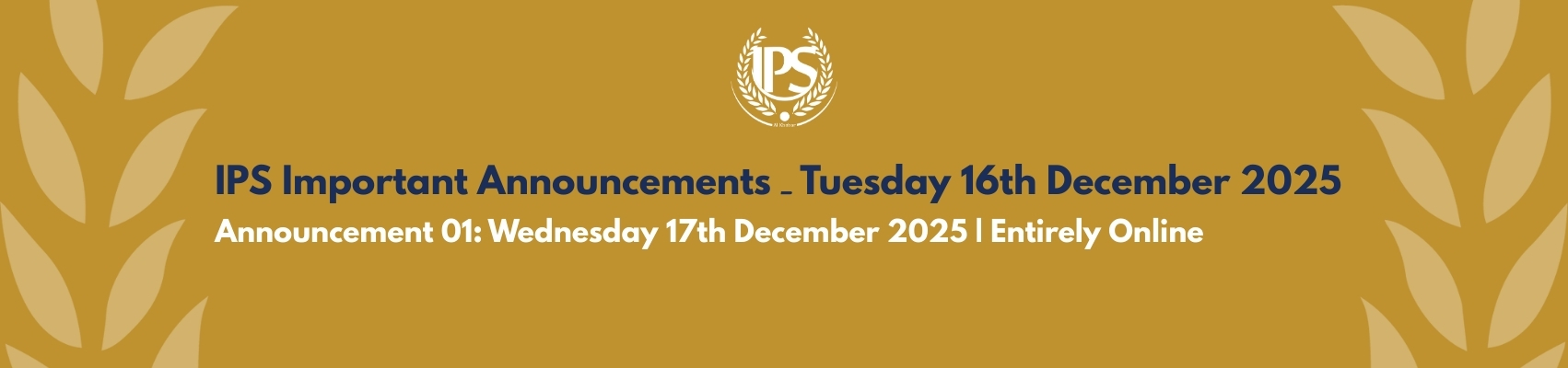 IPS Important Announcements ـ Tuesday 16th December 2025